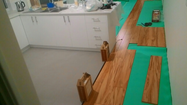 The greenish thing you see is the underlay I mentioned in the previous post. That didn't took me long to lay. It came in large rolls like a haystack. You just need to place it neatly and give it a smart kick. Doing so will see it roll to the other end of the room. Rinse and repeat.